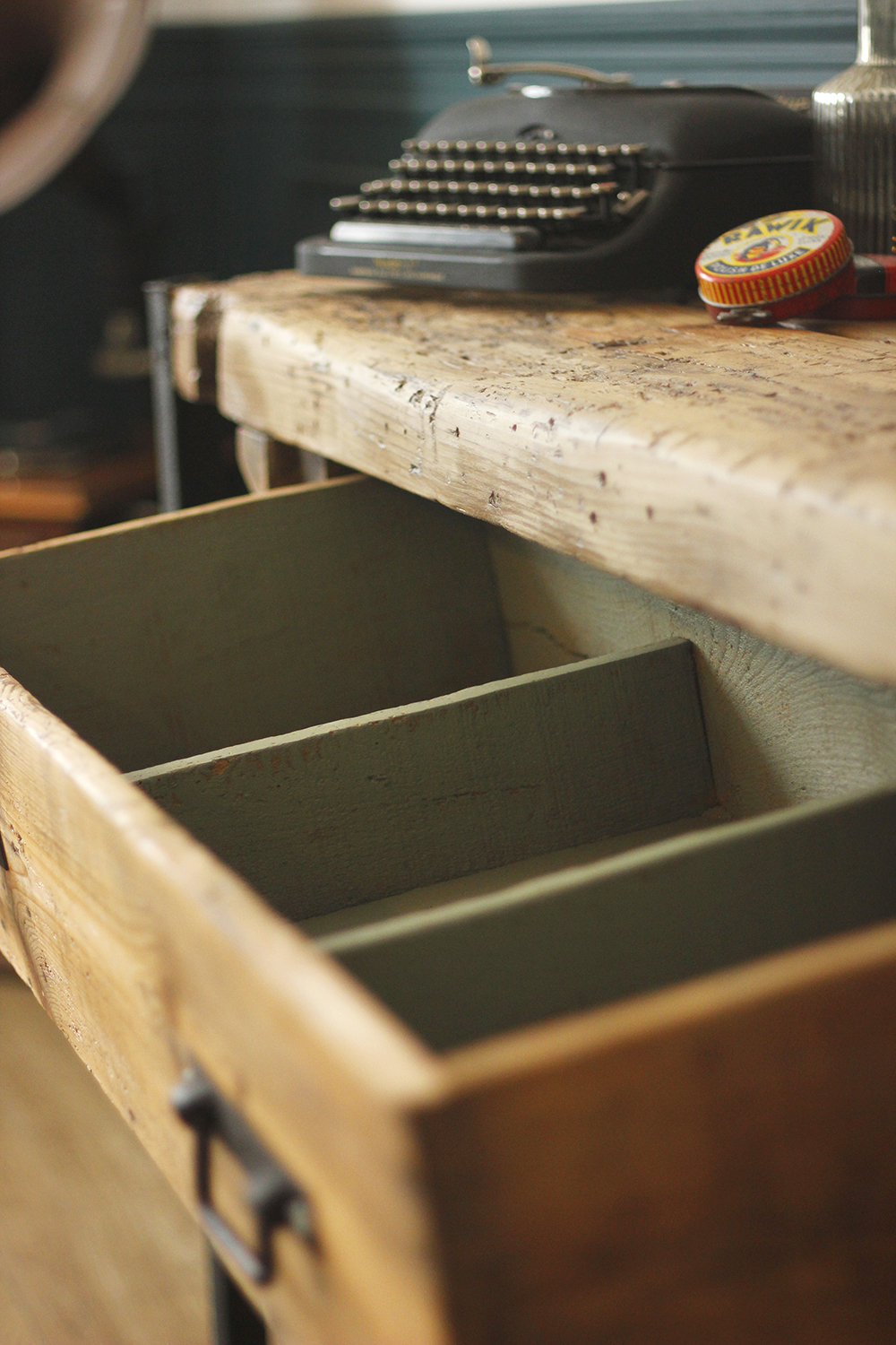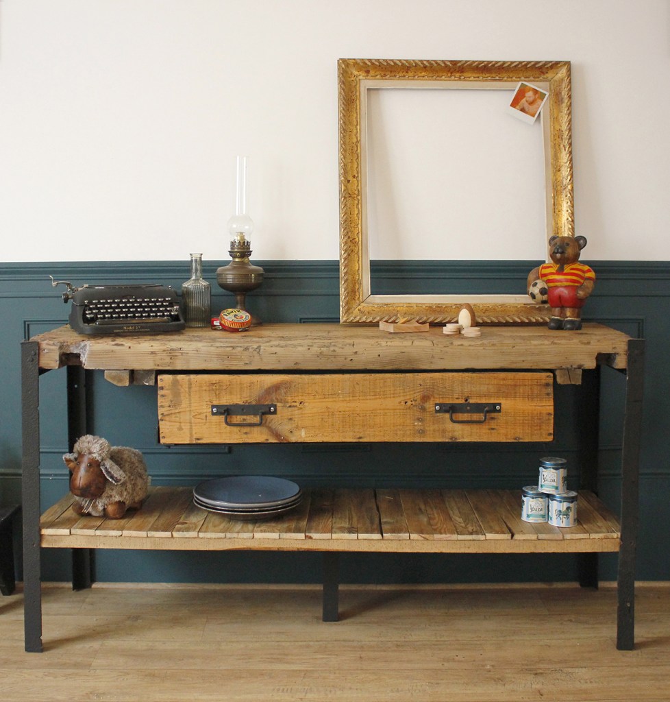 Sauvé de sa grange, cet établi de caractère se fera une jolie place dans votre intérieur.