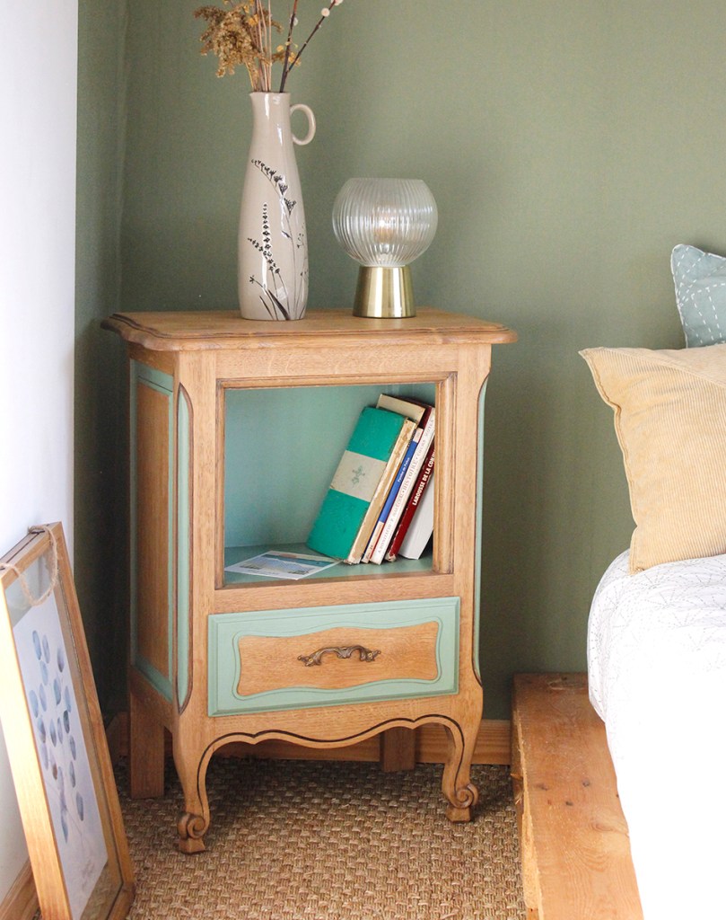 Ce beau chevet en bois aux jolies courbes se fera une place dans votre chambre ou ailleurs.